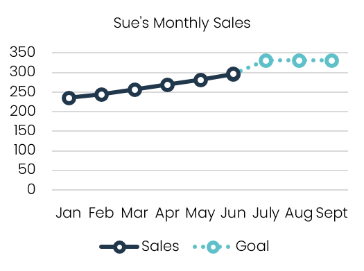 For example, consider goals based on territory sales trends. Sue in Territory A has increased sales over the last quarter by 15% while Bob in Territory B has increased sales by 3%. Goals are set such that each territory must improve whatever performance trend was achieved last quarter by 2%. This means that Sue is expected to increase her performance from 15% growth to 17% growth while Bob is expected to increase his performance from 3% growth to 5% growth. This ultimately penalizes Sue for her good performance last period and rewards Bob for his mediocre performance.