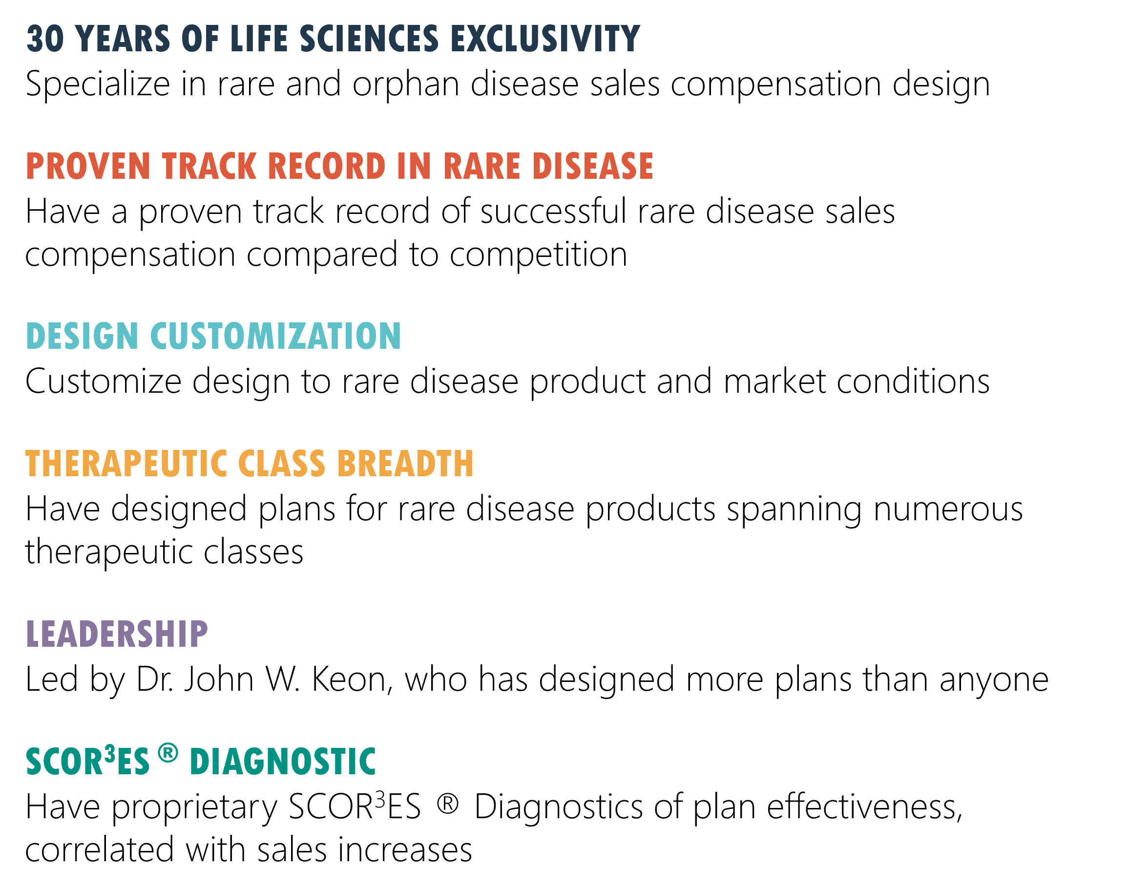 The rare and orphan disease market exhibits a number of unique characteristics that make designing a sales compensation plan incredibly challenging. This is why it is critical to partner with a company that has the expertise and proven track record of designing successful sales compensation plans for rare disease products.
