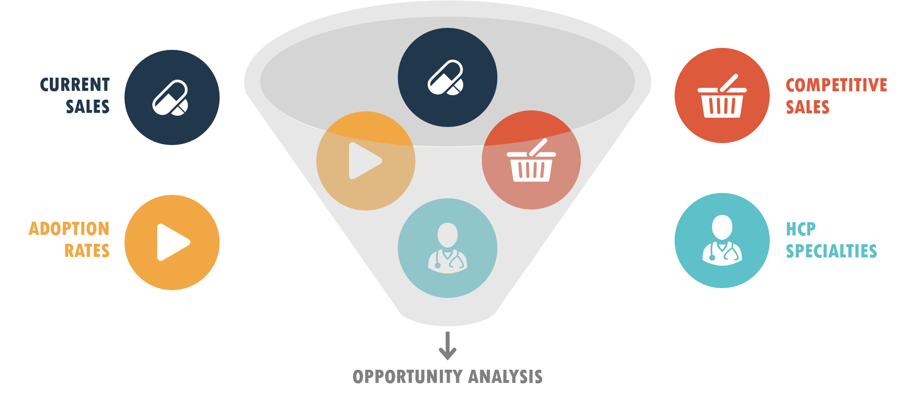 Our pharma sales force sizing and territory alignment process—whether for a new pharma sales force, sales force expansion, etc.—always begins with an opportunity analysis in order to calculate the total potential earnings in the market. In this way, we can size and align according to where the opportunity lies in order to maximize the sales force’s productivity and efficiency.