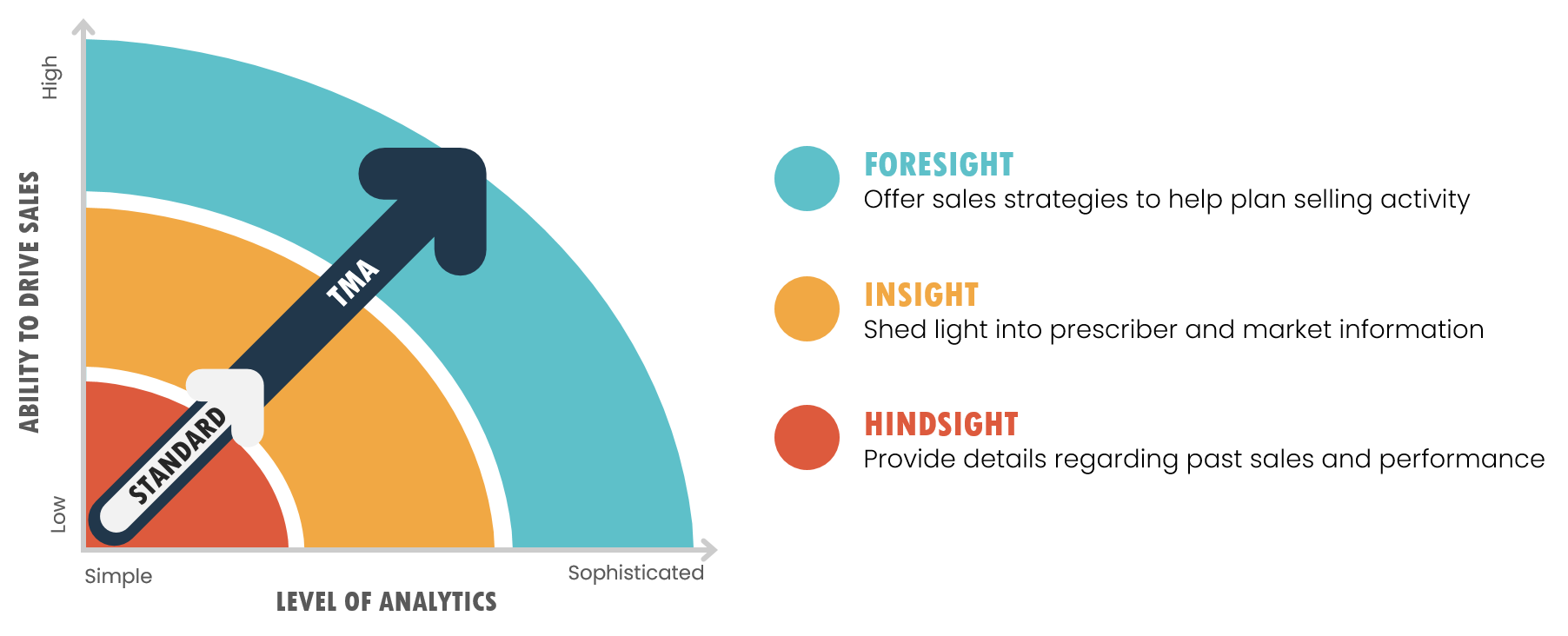 What makes our advanced biopharma commercial modeling so powerful is that we don’t just provide hindsight (i.e., past sales and performance) or insight (i.e., prescriber and market information), but provide foresight (i.e., strategies to drive sales). It is this innovative pharma sales modeling—and the actionable insights only such models are able to provide—that are invaluable in pharma commercial decision making as they have the most ability to drive sales.